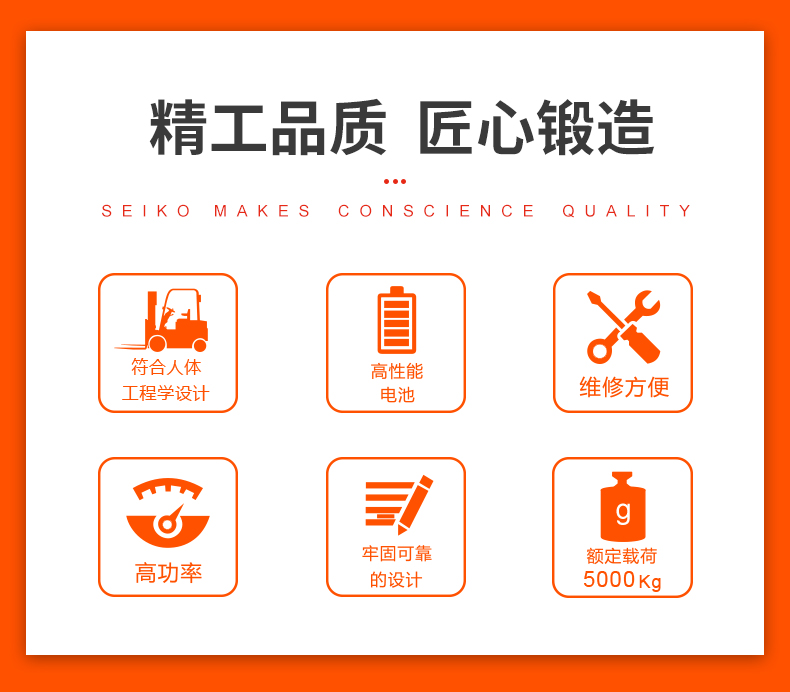産品賣(mài)點 符合人體工程(cheng)學設計 高性能電(dian)池 維修🚶方便 高⛱️功(gong)☔率🌂 牢固的設計 額(e)定載荷4000-5000kg