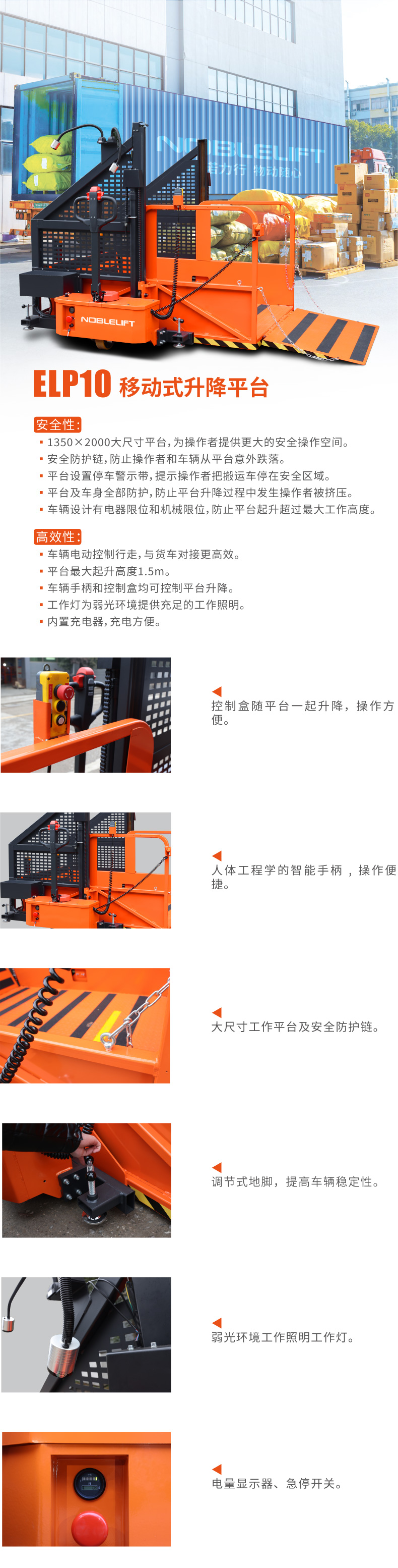 産品(pin)賣點 車輛電動(dong)控制行走,與貨(huo)車對接 工作燈(dēng)爲弱⛹🏻♀️光環境😍提(tí)供充足的工作(zuò)照明 調節式地(dì)腳,提高車輛穩(wen)👈定性 控制盒随(suí)平台一起操作(zuo)方便 人體工程(cheng)學智能手柄 大(dà)尺🈲寸工作平台(tái)及安全防護鏈(lian)