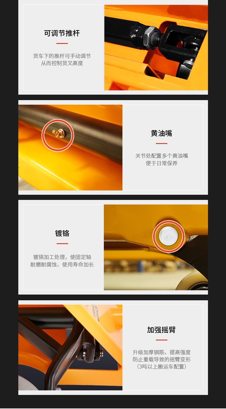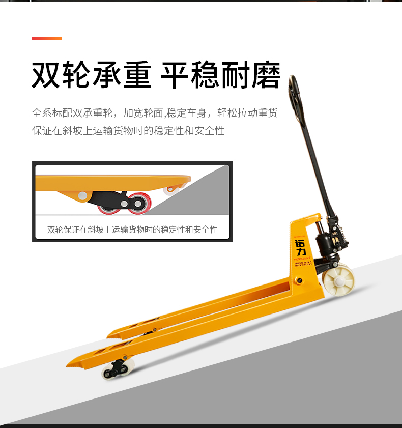 産品(pin)賣點 各種超市(shì)、倉庫和工廠段(duan)距離手動搬運(yun)🍉貨物⛹🏻♀️的理想選(xuǎn)擇 設計緊湊,外(wài)形美觀,大載荷(hé)2000/3000kg 德國💘标準WAGNER噴塗(tu)系統噴塗質量(liàng) 所有的轉向軸(zhou)都加以潤滑,确(que)保👉良好的操作(zuo)性和輕松的轉(zhuǎn)向。複合套和鍍(du)鉻的軸确保了(le)平穩的起升和(hé)行走,使用壽命(ming)長